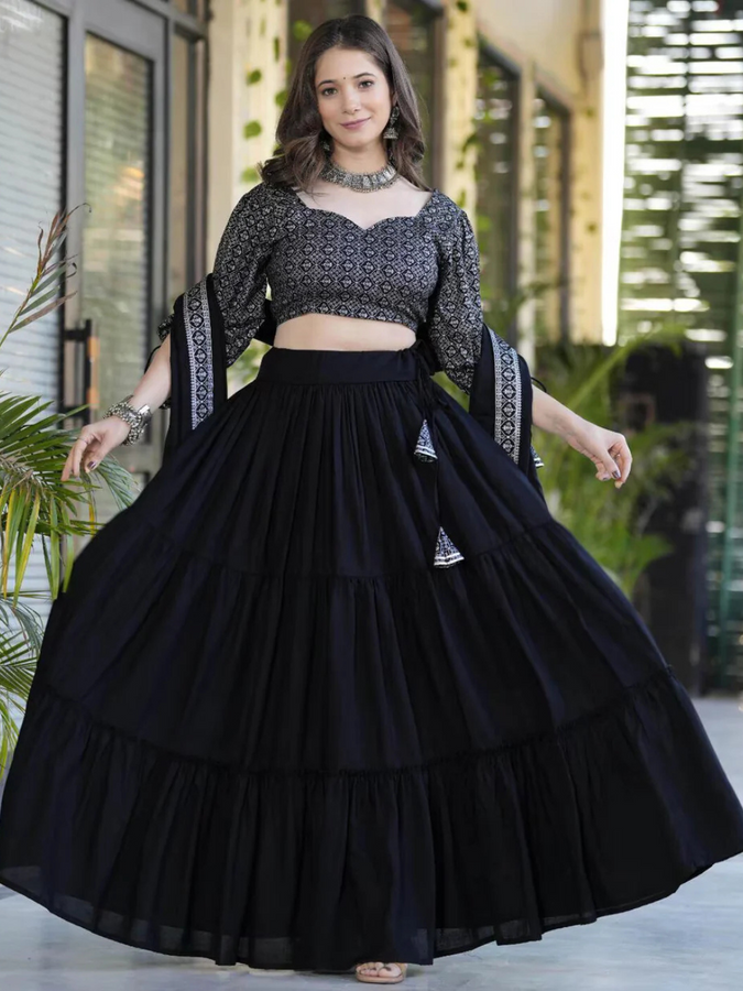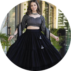Women Flared Lehenga Choli Set with Dupatta →