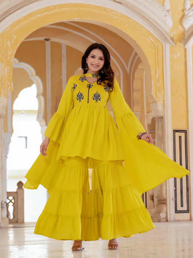 Women Viscose Rayon Kurta Pant Dupatta Set →